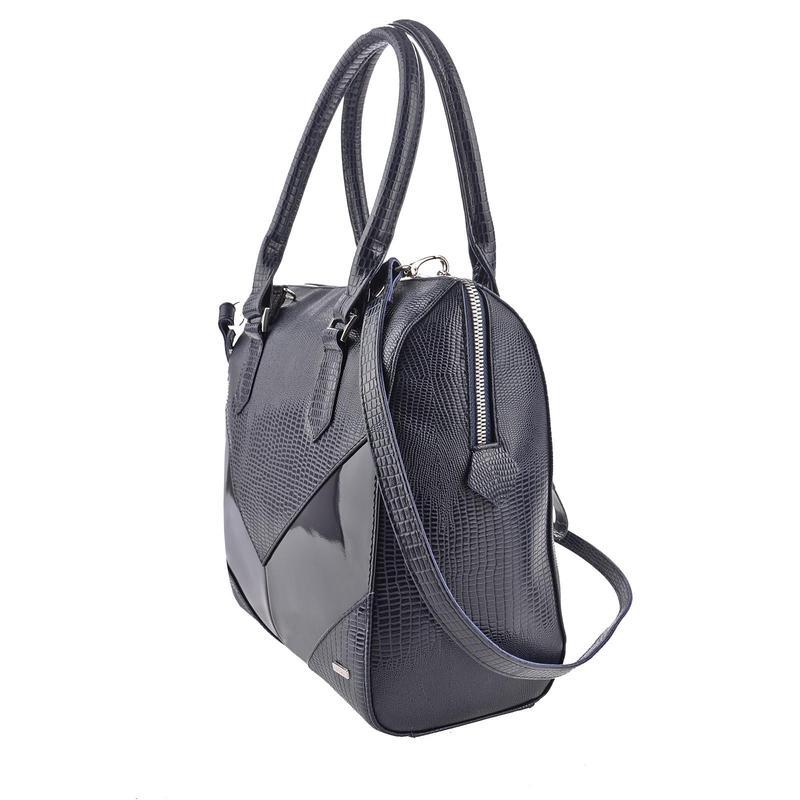 Женская сумка среднего размера популярной конструкции. Изготовлена из натуральной кожи. Внутри — одно отделение, карман на молнии и открытый карман. Сумка закрывается на молнию. Снаружи на задней стенке — карман на молнии. Длина ручек позволяет носить сумку в руке и на сгибе локтя. В комплекте — наплечный ремень.
