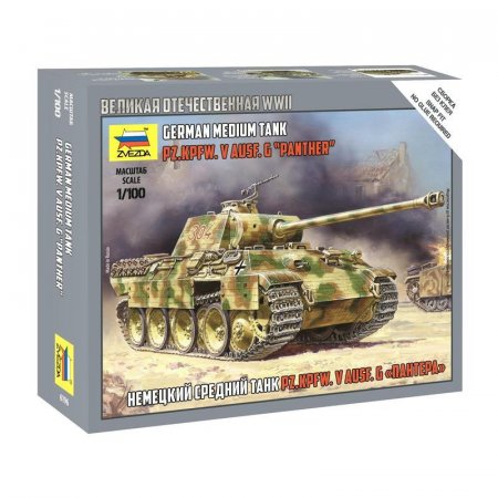 Сборная модель — Немецкий танк «Пантера». Историческая справка: Разработка танка PzKpfw V «Пантера» была начата в конце 1941 года. В следующем году прототипы прошли испытания, в результате которых был выбран танк, разработанный фирмой MAN. В январе 1943 года танк «Пантера» был запущен в серийное производство, которое продолжалось до самого конца войны. Всего с 1943 по 1945 год было построено чуть менее шести тысяч «Пантер», которые принимали участие в боях, как на восточном, так и на западном фронте. Модель собирается «на щелчок», без использования клея. Благодаря новейшим технологиям, применявшимся при разработки модели, все детали превосходно стыкуются между собой. Копийность модели, как всегда, на высоте: ее очертания полностью соответствуют прототипу, и, при этом, для такого малого масштаба она очень хорошо детализирована. Модель танка PzKpfw V «Пантера» украсит собой как коллекцию моделиста, так и армию игрока в настольные военно-исторические игры. Набор деталей из пластмассы для сборки одной модели неокрашенного танка. Состав набора:, 1 неокрашенный танк, 1 флаг отряда.