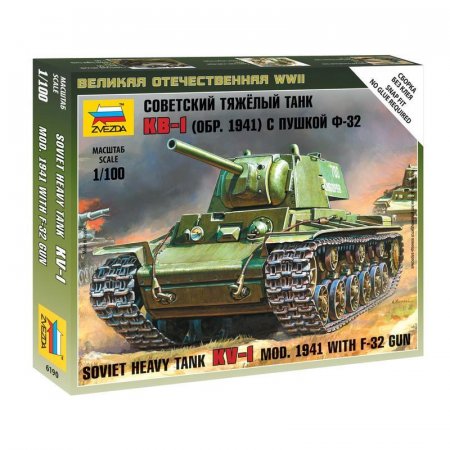 Сборная модель — Советский тяжелый танк КВ-1 обр. 1941г. с пушкой Ф-32 Историческая справка: Изначально танки КВ были вооружены 76-мм пушкой Л-11. Так как ее характеристики были признаны неудовлетворительными, для танка была разработана пушка Ф-32. Новая модификация танка была запущена в производство в январе 1941 года. Набор деталей из пластмассы для сборки одной модели неокрашенного танка. Состав набора: 1 неокрашенный танк, 1 флаг отряда. Карточку с игровыми характеристиками отряда вы найдете в разделе «Схема сборки и окраски». Инструкция на коробке! Сборка осуществляется без использования клея.