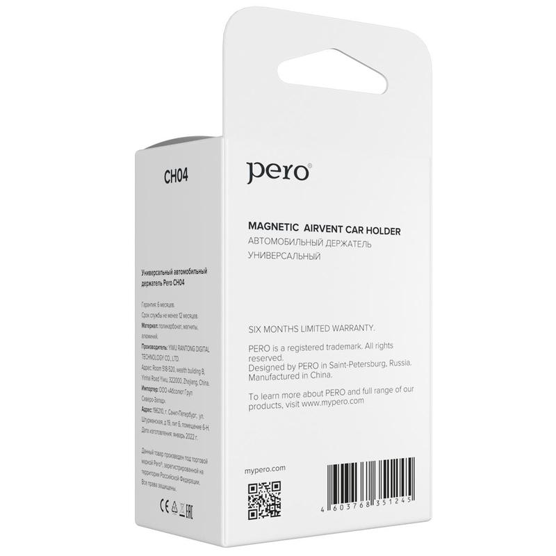 Автомобильный держатель Pero CH04 с шестью магнитами крепится к решетке воздуховода в автомобиль при помощи прочного зажима. Вращение корпуса держателя на 360 градусов. Поверхность магнитной части держателя сделана из алюминиевого сплава. Угол вращения: 360 градусов; Количество магнитов внутри: 6; Размер магнитов: 12?4 мм; Тип крепления: зажим; Место крепления держателя: решетка воздуховода; Максимальная нагрузка: до 2.5 кг; Размер упаковки: 55?45?90 (мм); Материал: поликарбонат, магниты, силикон; Гарантия: 6 месяцев; Срок службы не менее 12 месяцев; Комплектация: автомобильный держатель, 2 металлические пластины для крепления смартфона.Внешний вид и/или характеристики товара могут быть изменены производителем в соответствии с производственным процессом.