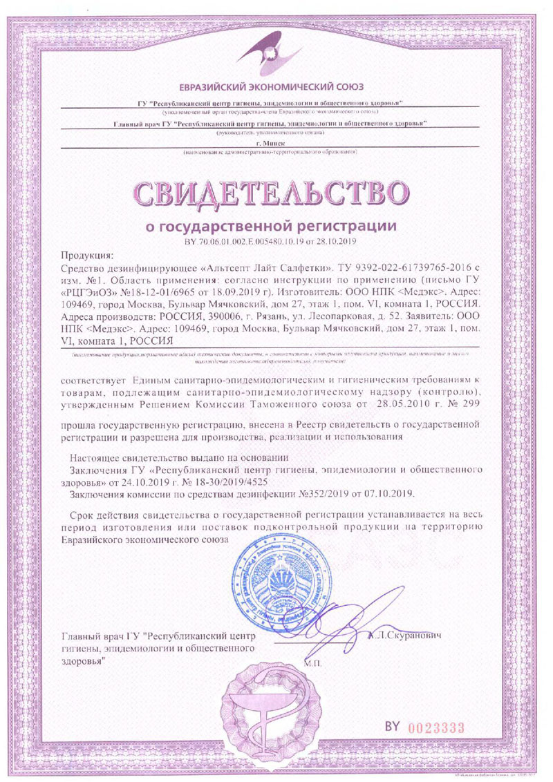 Дезинфицирующие салфетки Альтсепт Лайт. Универсальное средство (готовый к применению раствор) для обработки рук, перчаток, поверхностей (в т. ч. загрязненных биологическими субстратами), инструментов и эндоскопов, датчиков УЗИ, кувезов, оптических приборов и оборудования, бактерицидных ламп, различных насадок, в т. ч. стоматологических наконечников, термометров и т. д.