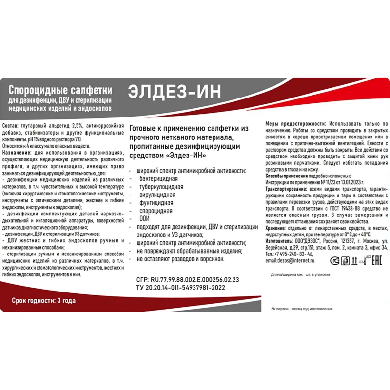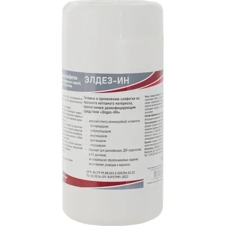 Спороцидные салфетки из белого нетканого материала, равномерно пропитанные дезинфицирующим средством «Элдез-ИН».