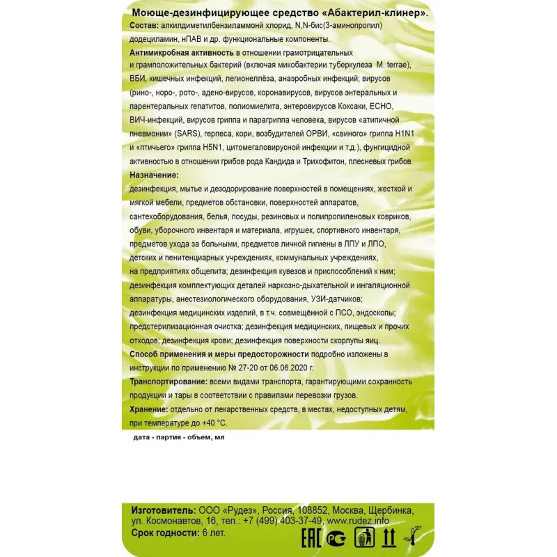 смывание рабочего раствора средства с обработанных поверхностей после дезинфекции не требуется.
