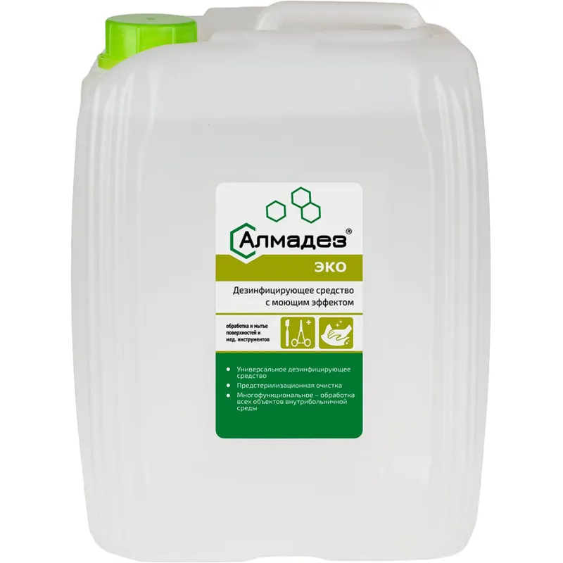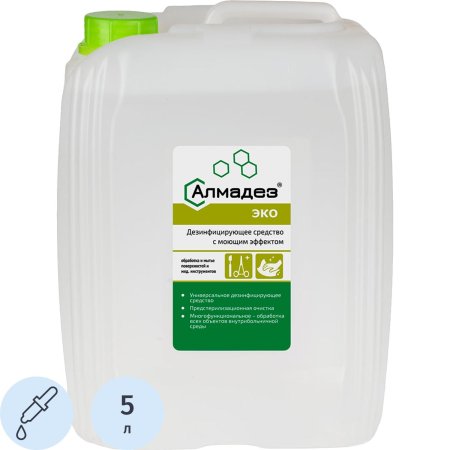 Дезинфицирующее средство «Алмадез-эко» представляет собой прозрачную жидкость от бесцветного до светло желтого цвета со слабым специфическим запахом или запахом применяемой отдушки.