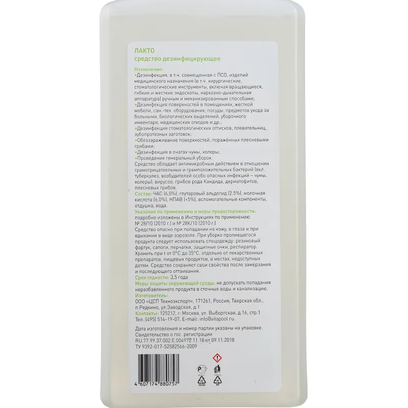 Срок годности: в упаковке — 3.5 года, в рабочем растворе — 30 дней.
