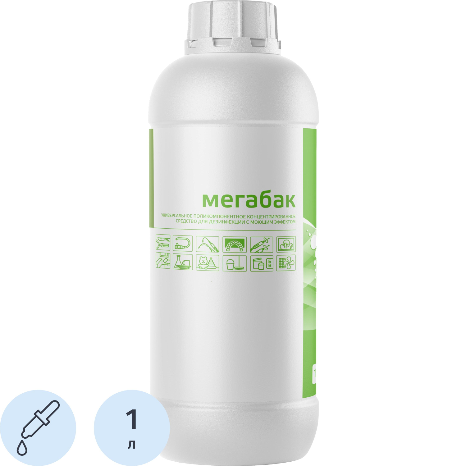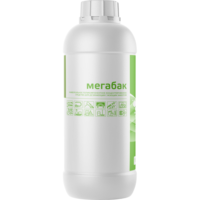 Дезинфицирующее средство Мегабак универсальное поликомпозиционное, концентрированное с моющим эффектом.