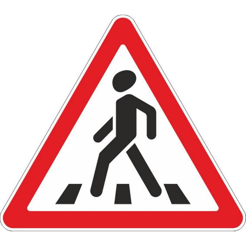 Дорожный знак 1.22 «Пешеходный переход» предупреждает водителя о том, что впереди пешеходный переход. Изготовлен из оцинкованного металла 0,8-1 мм и световозвращающей пленки типа А (коммерческая). II (второй) типоразмер. Соответствует ГОСТ 52290-2004. Крепеж в комплект не входит.