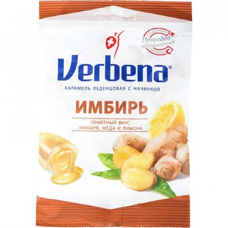Леденцы Verbena «Имбирь» 60 г с начинкой из натуральных экстрактов полезных растений имеет повышенное содержание витамина С (200 мг на 100 г). Всего 6 леденцов Verbena обеспечит более половины суточной потребности витамина С!