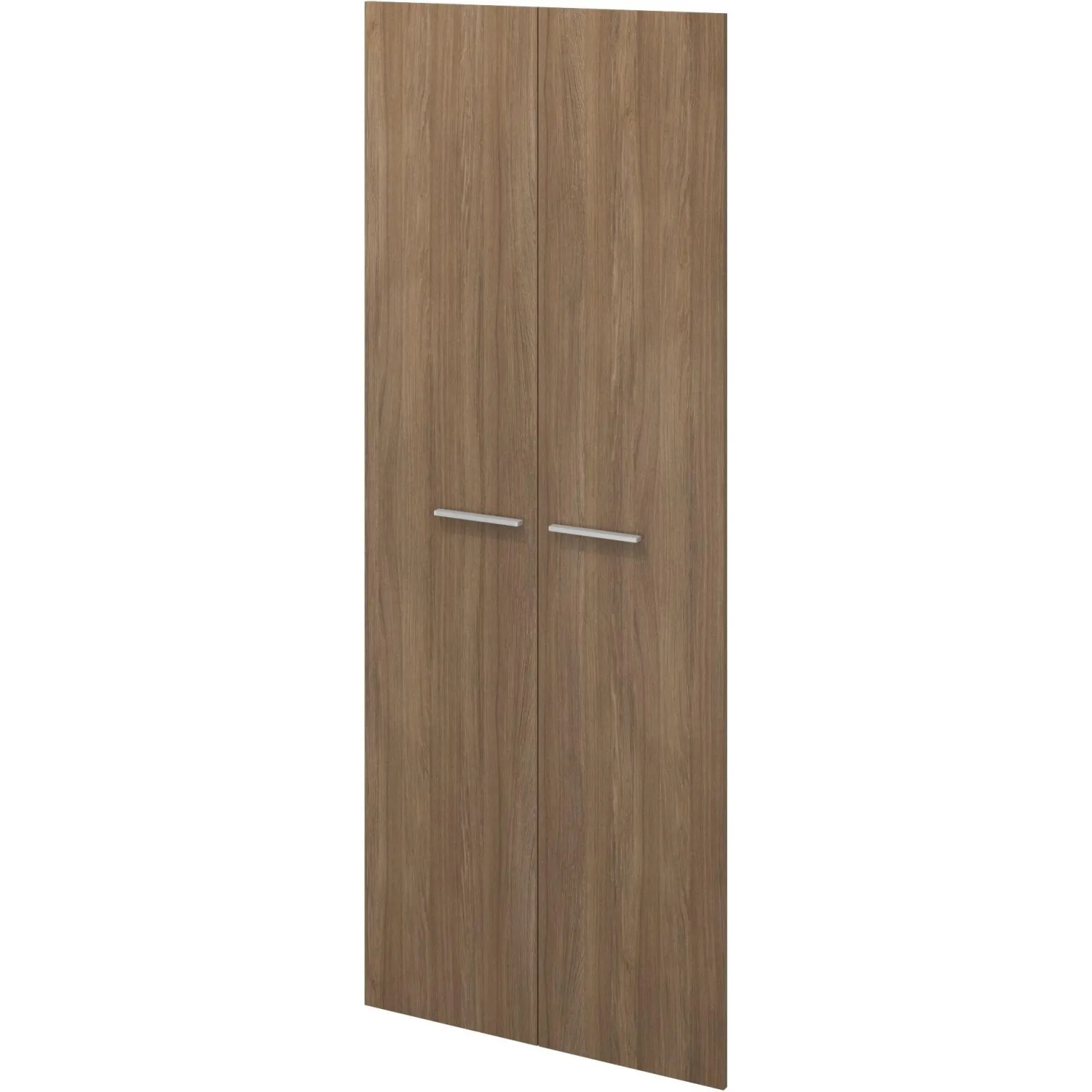 Двери высокие, подходят для стеллажа. В упаковке 2 штуки. Материал изготовления и его толщина — ЛДСП 18 мм кромка ПВХ 0,4 мм. Материал и цвет ручек — пластик, серого цвета. Наличие фурнитуры в комплекте.