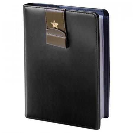 Мягкая съемная обложка из матовой гладкой искусственной кожи с декоративной нашивкой в виде погон с тиснением фольгой и прострочкой по периметру имеет скругленные уголки.