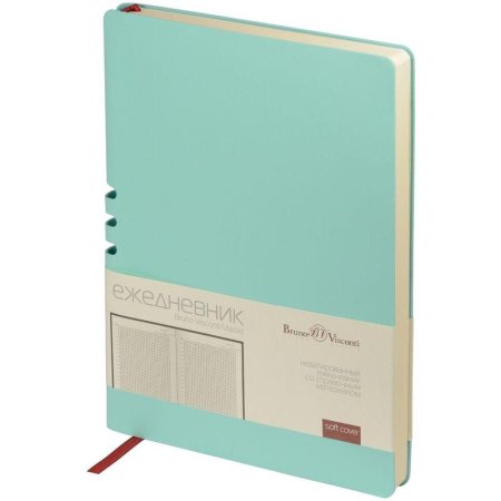Этот ежедневник вдохновлен солнечными днями и томными ночами Мадрида. И как этот великий город он лишь намекает снаружи на свои тайны. Так, вырубка на спинке — это удобная петля для ручки. Пользоваться этим секретом — одно удовольствие. Недатированный ежедневник Madrid от Bruno Visconti исполнен в модном зефирном мятном цвете. Гибкая обложка с покрытием Soft Touch. Бордовое ляссе выгодно прекрасно сочетается со скругленной обложкой и бежевым блоком. Для изготовления данного ежедневника использована бумага плотность 70-90 г/кв.м. Справочная информация на 17 страницах. Ежедневник упакован в картонный полукороб и термопленку. Формат А5.