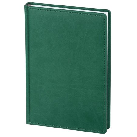 Ежедневник датированный на 2022 год. Формат: 143?210 мм. Цвет: зеленый. Блок 360 страниц (180 листов) в 2 краски. Бумага 70 г/кв.м. Блок с перфорацией уголка. Алфавитный блок без вырубки. Вырубка блока по месяцам. Календарь на 2022—2025 гг. Содержит информационно-справочный блок (телефоны первой необходимости, телефонные коды городов России и мира, карта поясного времени, международные размеры одежды и обуви, питание и расход калорий). Закладка-ляссе. Обложка с поролоном из высококачественного переплетного материала, имитирующий натуральную кожу. Возможно нанесение логотипа на обложку любым способом тиснения.