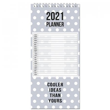 Планнер датированный на 2021 год Be Smart из коллекции «Dots» формата 210x450 мм на спирали сверху с вечным трендом на «горох» в дизайне серого цвета, совмещенным со стильной и немного дерзкой надписью
