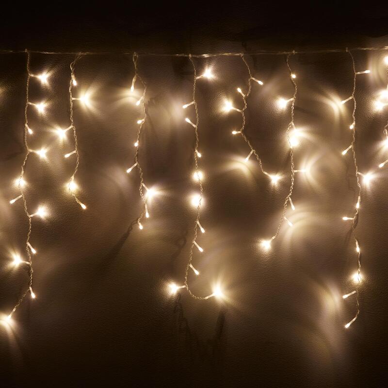 Светодиодная гирлянда Бахрома для использования внутри помещений. Незаменимый аксессуар для создания новогоднего настроения, а также любого декора и атмосферы, как праздничной, так и романтической. Выполнена в виде бахромы - прямая линия с нисходящими линиями светодиодных лампочек. Безопасна при использовании как на новогодней ели, так и мебели, шторах и т .д. Количество лампочек: 200. Цвет лампочек: теплый белый. Длина: 2,4х0,6 м. Режим свечения: вспышка. Степень защиты: IP65. Тип питания: батарейка и подключение к сети. Соединяемость: нет.