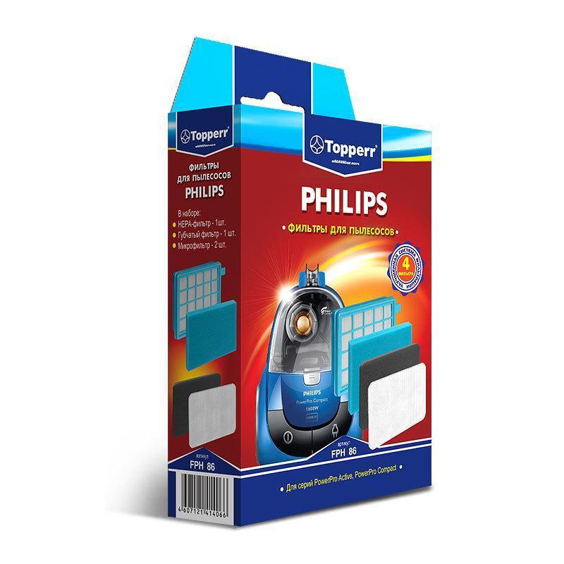 Набор фильтров FPH 86 для пылесосов PHILIPS. В наборе:- НЕРА-фильтр с внутренним губчатым слоемОбладает высочайшей степенью фильтрации, задерживает 99,5 % пыли. Благодаря специальной концентрации и свойствам фильтрующего материала, фильтр улавливает мельчайшие частицы, позволяя очищать воздух от пыльцы, микроорганизмов, бактерий и пылевых клещей. Своевременная замена фильтра обеспечивает правильную работу пылесоса, продлевая срок его эксплуатации.- МикрофильтрыУлавливает оставшиеся микрочастицы пыли на выходе из пылесоса.Модели и серии пылесосов:PowerPro Active: FC8630-FC8639, FC8640-FC8649PowerPro Compact: FC8470-FC8479