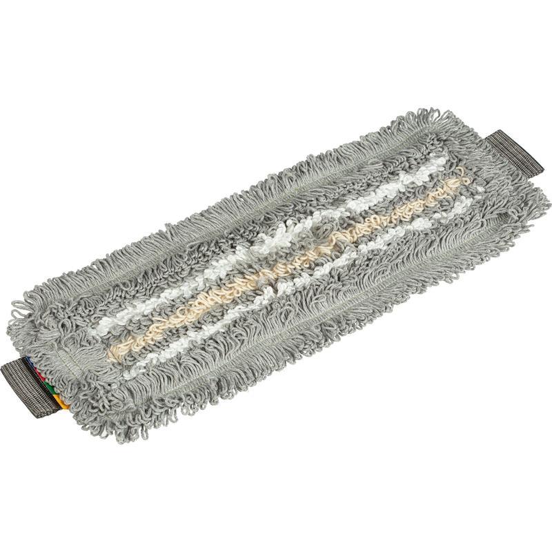 — высокоэффективная структура мопа: белые микроволоконные нити отлично отмывают, серые комбинированные нити — оттирают и удерживают грязь, бежевые нити из хлопка — впитывают много грязи и влаги;