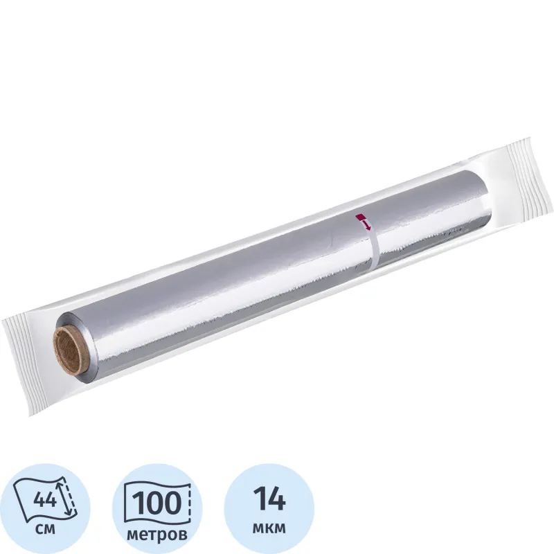 Пищевая фольга является удобным материалом для запекания и хранения продуктов: обладает прочностью, жаростойкостью, непроницаема для влаги и жира, сохраняет свежесть и качество продуктов в течение длительного времени, а также не накапливает посторонние запахи и пыль. Фольга является разлагаемым материалом, который легко утилизируется (например, закапыванием в почву). Продается в рулоне шириной 44 см, общая длина рулона — 100 м. Плотность — 14 мкм.