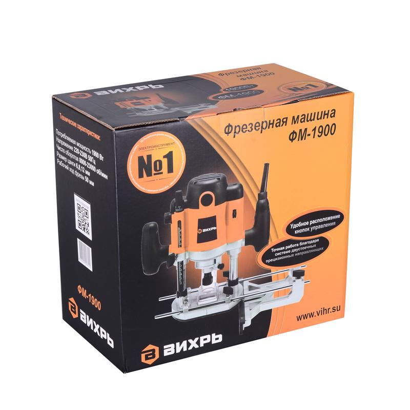 Фрезерная машина ВИХРЬ ФМ-1900 используется для фигурной обработки древесины на заданную глубину. Представленная машина является самой мощной в данной серии. Боковые прорезиненные рукоятки обеспечивают надежный захват инструмента и снижение вибрации во время работы. Специальная шкала позволяет устанавливать необходимую глубину обработки заготовки. Прочная подошва с надежными фиксаторами. Инструмент можно настроить под конкретную задачу путем изменения числа оборотов.Особенности:— Регулировка глубины. Фрезер оснащен ограничителем глубины, который легко фиксируется специальным рычагом.— Безопасность. Кнопка блокировки шпинделя позволяет легко и безопасно менять оснастку.— Долгий срок службы. Вентиляционные отверстия способствует охлаждению двигателя, что повышает рабочий ресурс фрезерной машины ВИХРЬ.— Работа вдоль края. Параллельный упор фрезерной машины предназначен для точного следования вдоль края заготовки на заданном расстоянии.— Легкий доступ к щеткам. Возможность легкого доступа к щеткам делает возможной их самостоятельную замену без необходимости обращения в сервисные центры.Преимущества:— Регулировка глубины — повышает точность работы;— Блокировка шпинделя — позволяет быстро менять оснастку;— Мощный двигатель — для высокой производительности;— Широкая подставка — для устойчивой работы;— Прочная алюминиевая подошва — плавно скользит и предотвращает появление царапин;— Регулировка скорости — для решения разноплановых задач;— Удлинитель для пылесоса — позволяет работать в чистоте;— Эргономичные ручки — для удобного хвата;— Сниженный уровень вибрации — для точной и комфортной работы. Внешний вид и/или характеристики товара могут быть изменены производителем в соответствии с производственным процессом.