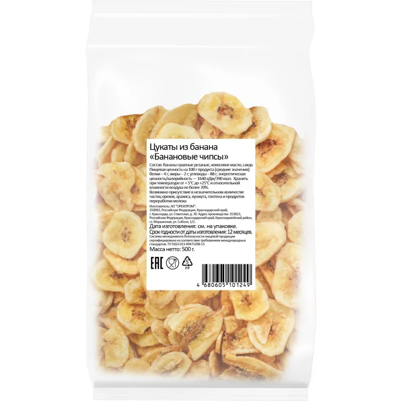 Чипсы банановые 500 г. Бананы — это не только вкусные и доступные фрукты, но и настоящий кладезь полезных веществ! Бананы богаты углеводами, которые быстро усваиваются организмом и дают энергию.