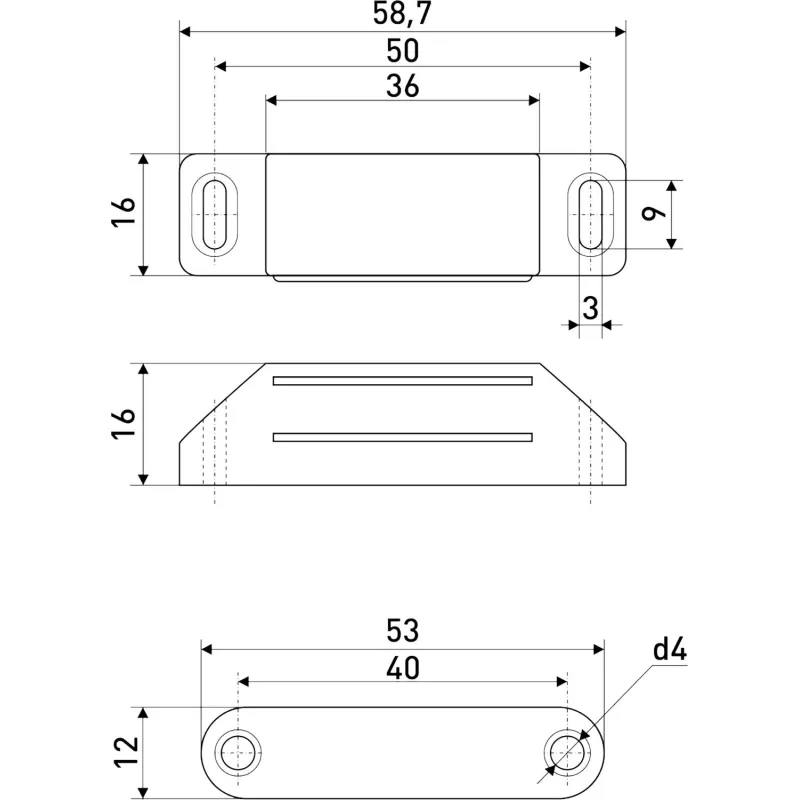 Накладка StahlBuro — это магнит для мебели, предназначенный для удобного закрывания дверей и ящиков. Угол установки 90° позволяет интегрировать магниты в разные дизайны мебели. Они обеспечивают надёжное закрывание фасадов, создавая приятный опыт использования. Размер накладки — 60×15 мм.