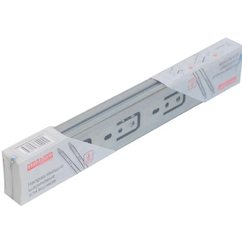 Направляющие StahlBuro 45-300/12 — это шариковые направляющие полного выдвижения без амортизации. Соответствуют европейскому стандарту. Это незаменимый элемент мебельной фурнитуры, обеспечивающий комфорт в ежедневном пользовании. Эти направляющие обеспечивают стабильную и плавную работу ящиков, предоставляя уровень комфорта, сопоставимый с передовыми системами выдвижения. Они отличаются современными характеристиками, обеспечивают равномерный ход и проявляют выдающуюся надёжность и долговечность. Комплект состоит из качественных направляющих и высококачественного крепежа к ним.