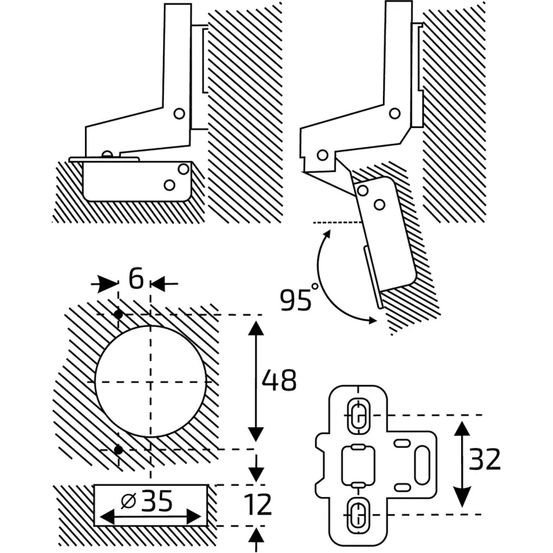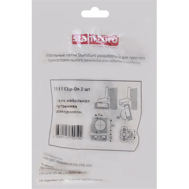 Петля StahlBuro 1111 Clip-On — это вкладная одноходовая мебельная петля с доводчиком, открыванием в 95° и углом установки 90°. Она обеспечивает плавное и мягкое открывание и закрывание фасада одним движением. В комбинации с планкой под саморезы, идущей в комплекте, петля надёжно устанавливается на деревянные фасады. Модель обладает простым методом монтажа Clip-on: для фиксации достаточно простого нажатия пальцем на корпус петли.