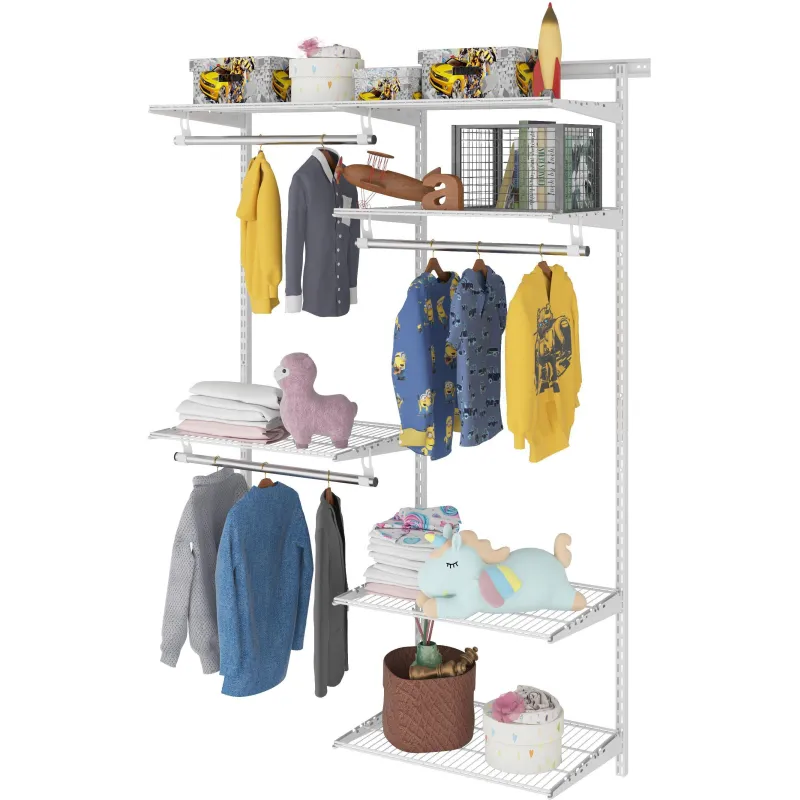 Комплект гардеробной системы — это практичное решение для хранения одежды и других предметов в доме. Предназначен для гардероба, прихожей, гостиной, спальни и гаража. Она представляет собой металлическую конструкцию, которую можно закрепить на стене, что позволяет разместить множество вещей. Одежда и другие вещи, которые хранятся в таких корзинах, хорошо проветриваются. Это помогает избежать неприятного запаха и порчи имущества. Систему легко устанавливать и демонтировать, поэтому ее можно переносить из одного места в другое (в другую комнату или квартиру). Она похожа на конструктор, который можно дополнять новыми деталями, свободно перемещать и адаптировать под любые бытовые нужды. Все элементы изготовлены из прочной стали, благодаря чему выдерживают большую нагрузку.