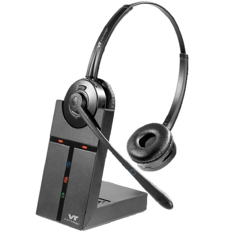 VT9000-D — беспроводная биуральная DECT-гарнитура с HD-звуком. Базовая станция DECT совмещена с зарядным устройством. Данную гарнитурулегко можно подключить к любому телефону по аналоговому кабелю RJ9 (распиновка 3-го типа — Yealink, Grandstream, SNOM; для подключения моделей телефонов с другой распиновкой необходимо использовать соответствующий кабель-переходник).