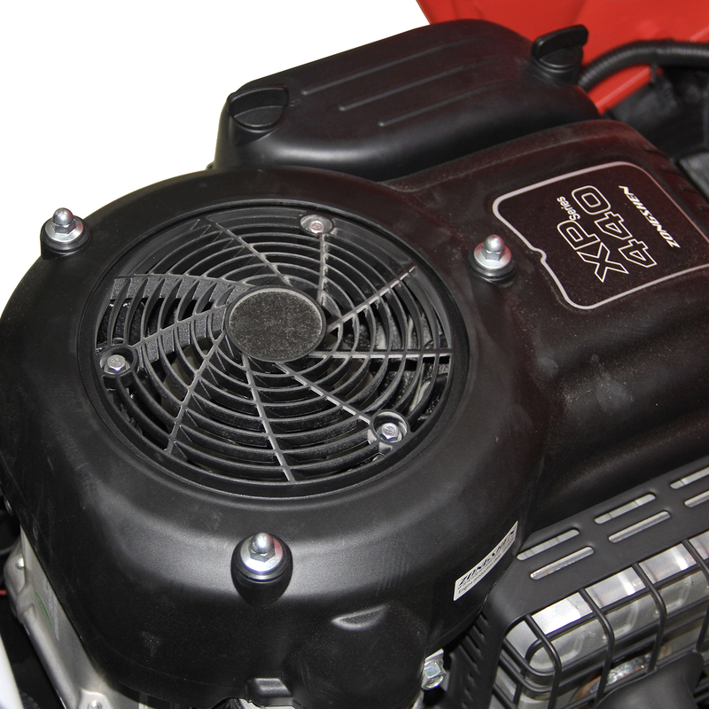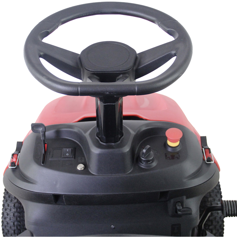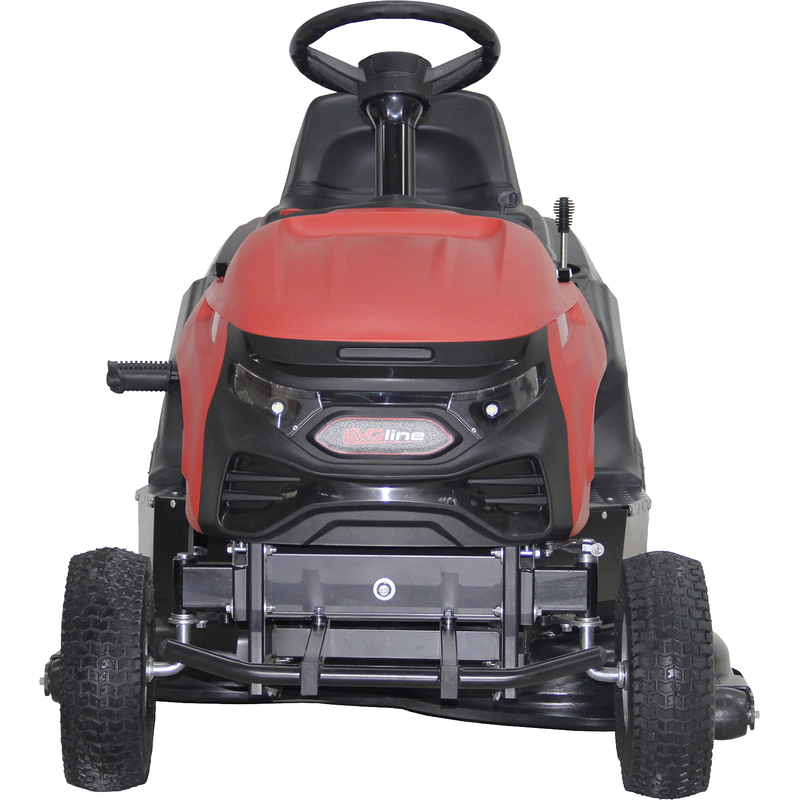 Газонокосилка бензиновая с сиденьем EVOline TRG 96 CH предназначена для быстрого кошения травы на больших территориях. Ширина кошения на модели TRG 96CH составляет 96 см, а высота регулируется в диапазоне от 35 до 75 мм (5 положений). На данной газонокосилке с сидением установлена гидростатическая трансмиссия, светодиодные фары и защитный бампер. Преимущества косилки с сиденьем TRG 96 CH: — Мощный и надежный двигатель Zongshen XP 440 (13 л.с.); — Прочная стальная дека с порошковым покрытием для защиты от коррозии; — Электромагнитная муфта включения ножей; — Металлические подножки с противоскользящим покрытием; — Передний защитный бампер; — Большие задние колеса; — Коннектора для подключения шланга для мойки деки; — Центральная регулировка высоты кошения в 5-ти положениях; — 2 пластиковых подстаканника; — LED-фары для работы в темное время суток; — Надежная механическая трансмиссия; — 2 режима кошения: мульчирование и выброс травы в сторону. Внешний вид и/или характеристики товара могут быть изменены производителем в соответствии с производственным процессом.