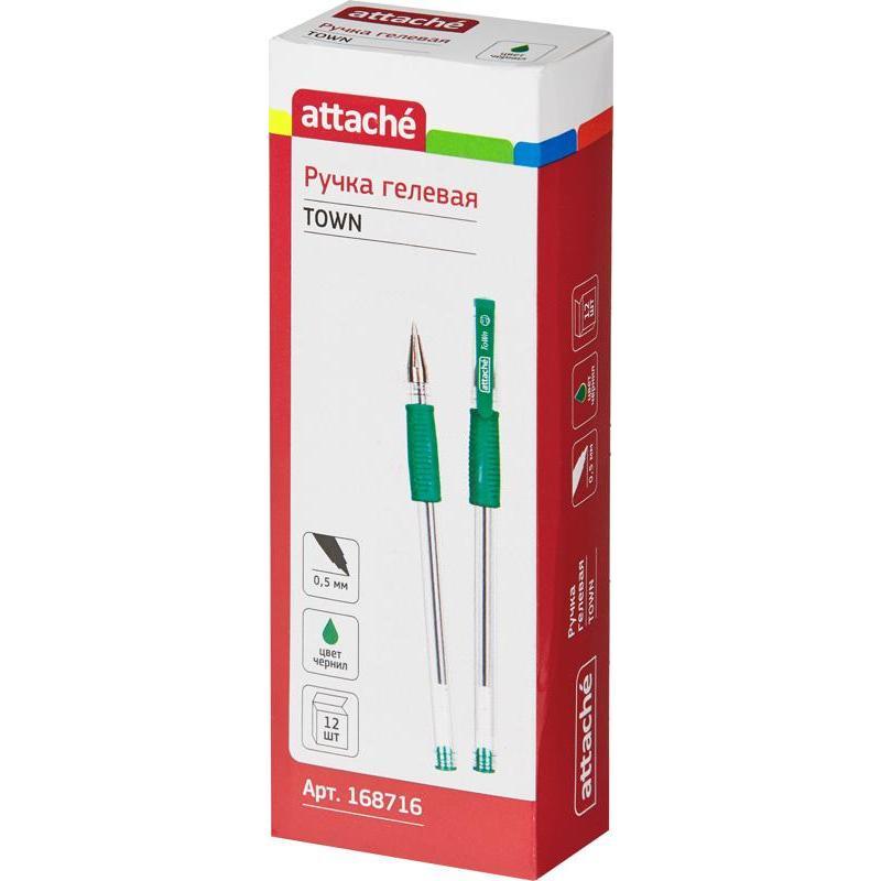 Гелевая ручка Attache Town отличается экологичностью — выполнена из переработанного пластика. Удобная резиновая манжетка для снижения напряжения руки. Стержень с чернилами зеленого цвета в комплекте (сменный). Ручка обеспечивает легкое и мягкое письмо, яркие и насыщенные линии толщиной 0,5 мм. Чернила быстро высыхают, не размазываются.