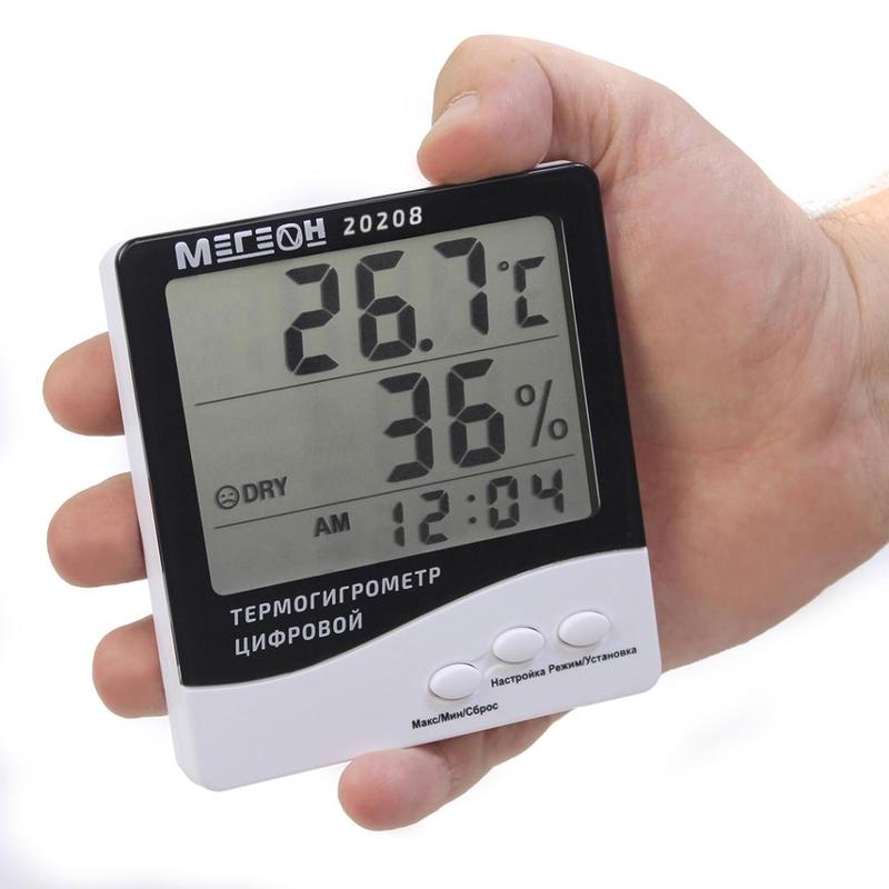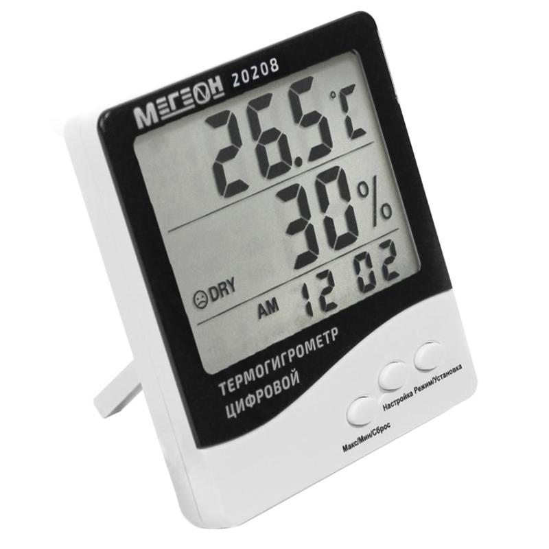 Цифровой термогигрометр Мегеон 20208 прибор для измерения температуры и влажности в помещении. Прибор оснащен большим высококонтрастным жидкокристаллическим дисплеем, на котором одновременно отображаются температура, влажность и текущее время. Благодаря современному эргономичному дизайну термогигрометр идеально впишется в интерьер любого дома, а функция фиксации минимального/максимального значений температуры будет полезной при использовании прибора в загородных домах и складских помещениях.