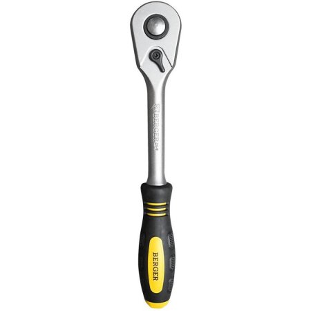 Трещотка Berger BG2292 ½" 260 мм выполнена из CR-V (хром-ванадий). Рукоятка выполнена из резинопластика. Тип переключателя: флажок/кнопка. Выдерживает нагрузку в 300 кг.