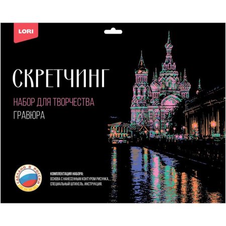 Гравюра — особый вид графического искусства. Сцарапывая верхний слой гравюры специальным штихелем, входящим в набор, ребенок может самостоятельно создать настоящее произведение искусства и почувствовать себя гравером. Готовую гравюру можно вставить в упаковку-рамку. Размер гравюр 30×40 см. Комплектация: Основа с нанесенным контуром, специальный штихель, инструкция.