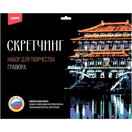 Гравюра — особый вид графического искусства. Сцарапывая верхний слой гравюры специальным штихелем, входящим в набор, ребенок может самостоятельно создать настоящее произведение искусства и почувствовать себя гравером. Готовую гравюру можно вставить в упаковку-рамку. Размер гравюр 30×40 см. Комплектация: Основа с нанесенным контуром, специальный штихель, инструкция.