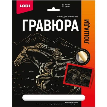 Гравюра- особый вид графического искусства. Сцарапывая верхний слой гравюры спеециальным штихелем, входящим в набор, ребенок может самостоятельно создать настоящее произведение искусства и почуствовать себя гравером. Готовую гравюру можно вставить в упаковку-рамку. Размер гравюр 18×24 см. Комплектация: основа с нанесенным контуром, специальный штихель, инструкция.