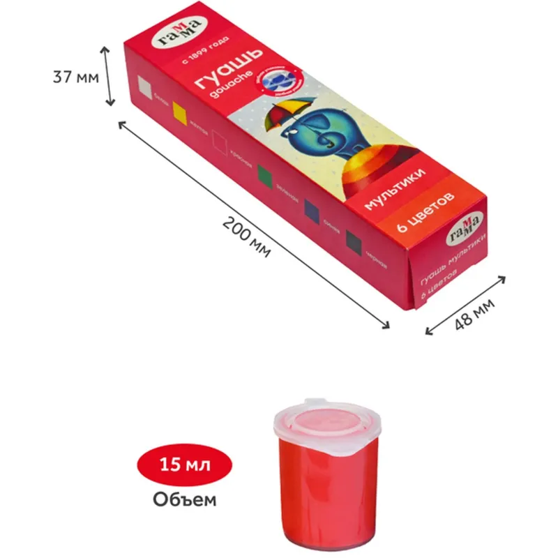 Гуашь Гамма Мультики 6 цветов по 15 мл