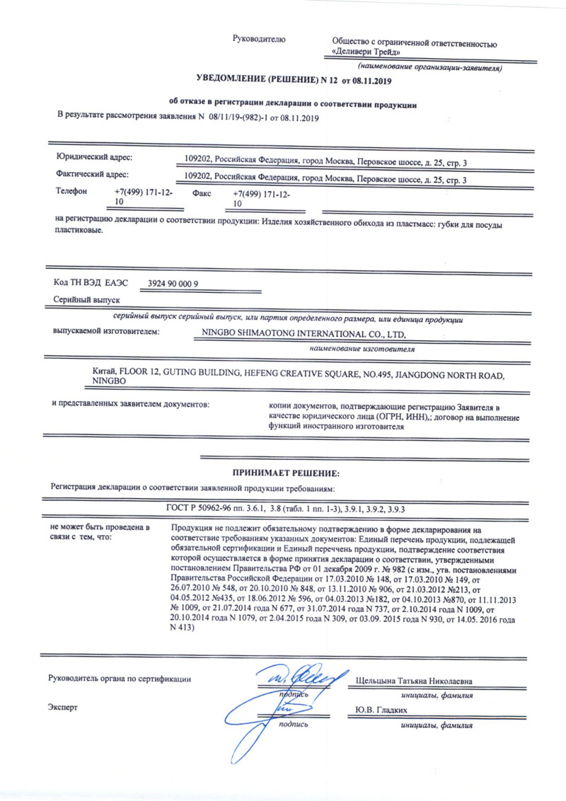 Сертификат соответствия |