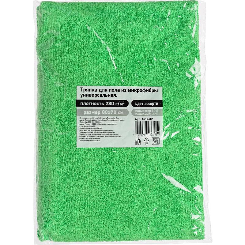 Тряпка для пола микрофибра 70×80 смНазначение: для мытья полов. Тряпка из плотной микрофибры идеально подходит для мытья всех видов покрытий. Она не царапает поверхности и отлично впитывает воду, как губка.Особенности и преимущества: − предназначена для мытья пола из любых материалов− хорошо впитывает влагу− полирует поверхность− удаляет загрязнения и пыль− легкая и удобная в применении− долгий срок службыХарактеристики: − размер: 70×80 см− цвет: в ассортименте− состав: микрофибра− плотность ткани 280 г/кв.м.Рекомендации по уходу: нет.