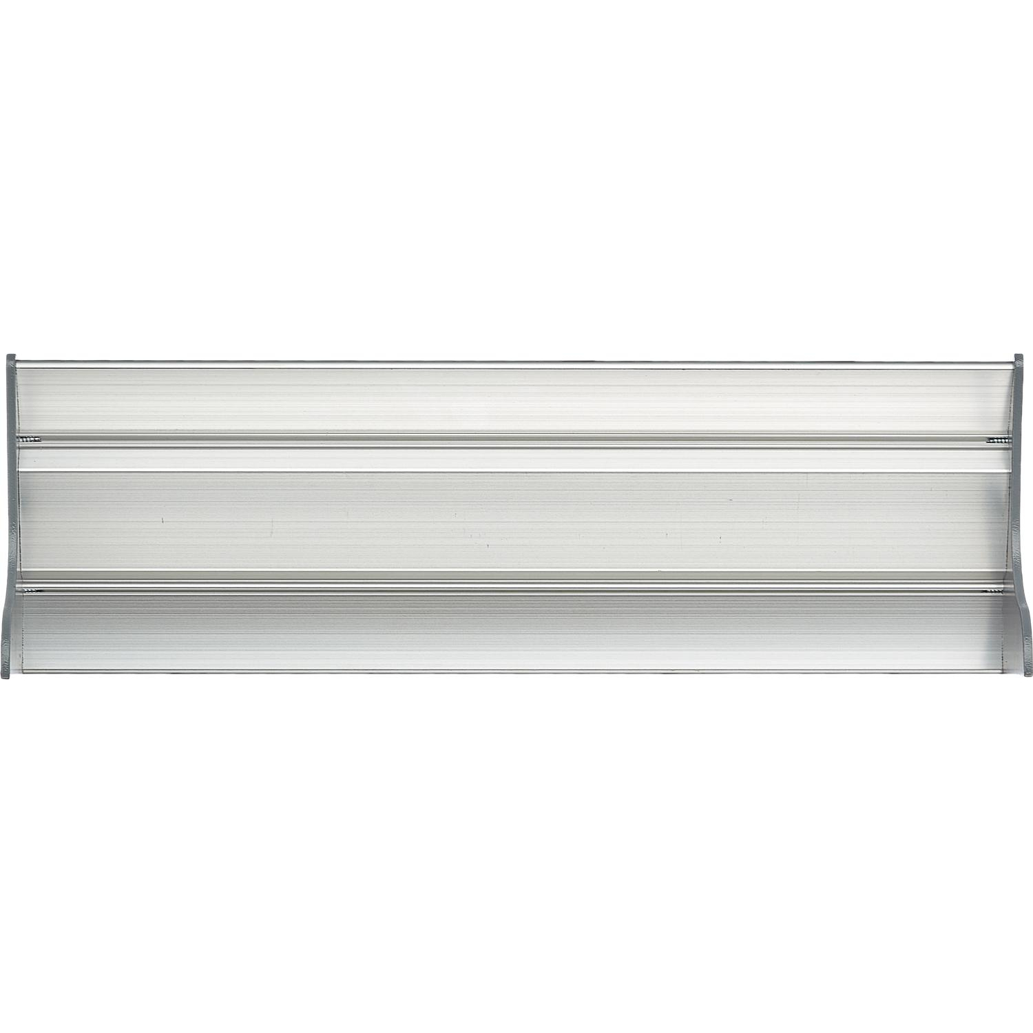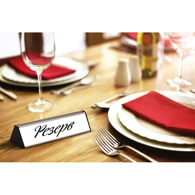 Горизонтальная одностороняя табличка Комус. Размер (ВxШxГ) — 100×300×68 мм. Цвет — серебристый. Изготовлена из анодированного, алюминиевого профиля и пластика. Табличка со сменной информацией. Защитная прозрачная пластиковая вставка снимается для легкой и быстрой замены информации. Оформление: бумажная вставка, аппликация, полноцветная печать. Вес — 400 г. Товар относится к ценовому сегменту «суперэконом». Имеет упрощенные характеристики и более простую упаковку. Отвечает основным требованиям потребления.