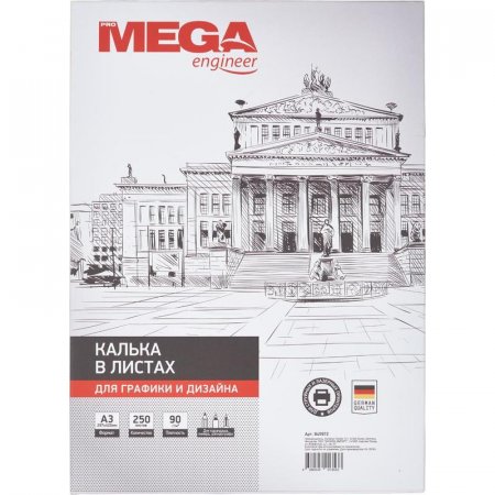 Калька в листах формата А3 (297×420 мм), плотность 90 г/кв.м. В упаковке 250 листов. Гладкая фактура. Предназначена для использования на