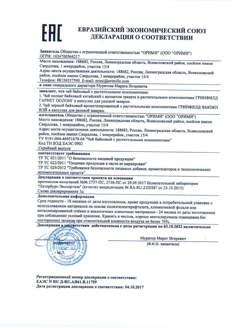 Чай в капсулах Greenfield Garnet Oolong (10 штук в упаковке).