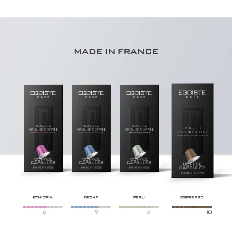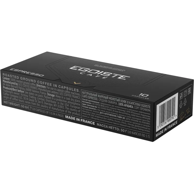 Состав: натуральный жареный молотый кофе в капсулах egoiste cafe espresso. средняя обжарка. 100% арабика. сорт премиум.