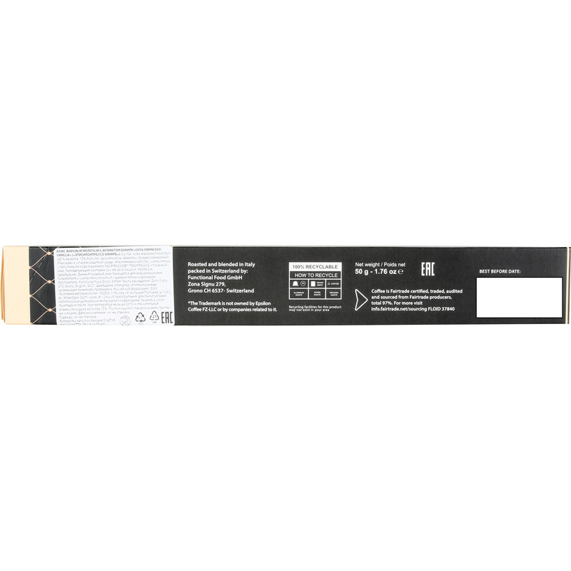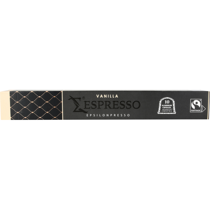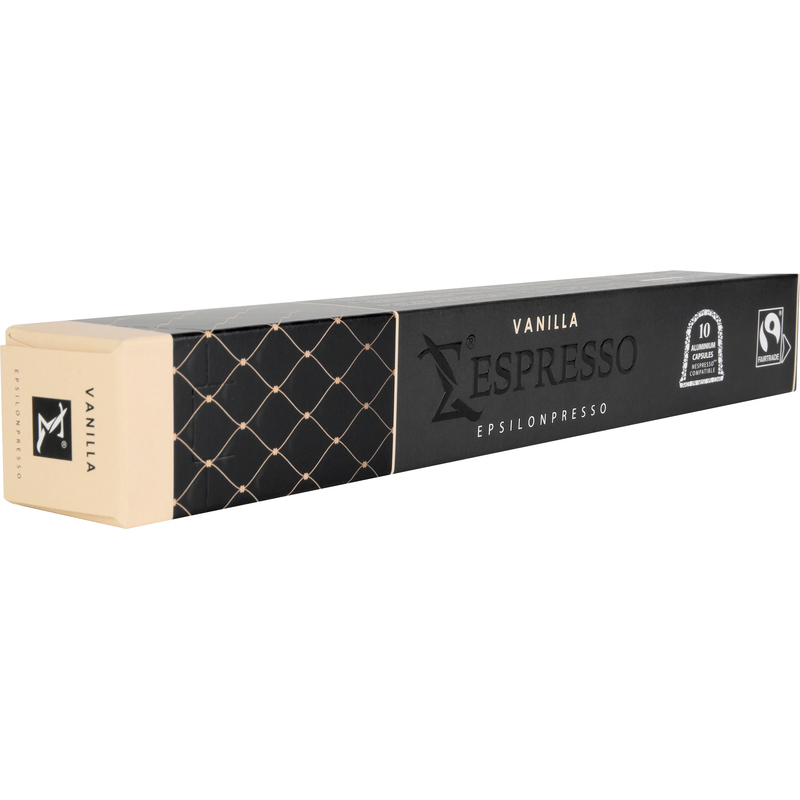 Кофе в капсулах для кофемашин Epsilonpresso Vanilla (10 штук в упаковке). Сливочный ванильный вкус этого бленда, насыщенный и нежный, напомнит мягкий изысканный эклер, бисквит или пряник. Этот бленд был создан из отборных зерен из Бразилии и Колумбии. Алюминиевые капсулы совместимы с капсульными кофемашинами Nespresso. Кофе упакован в условиях защитной среды.