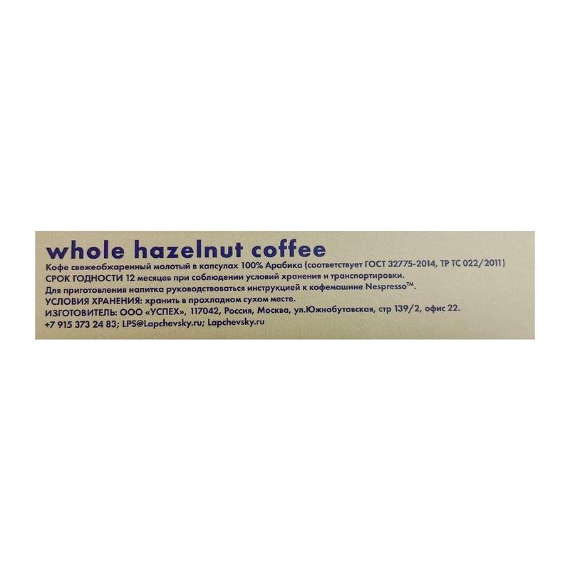 Кофе в капсулах для кофемашины Nespresso с оригинальным ароматом лесного ореха. Идеально обжаренная 100% Арабика умеренной крепости без горечи с ярким ароматом. Прекрасно подходит для приготовления лунго и экспрессо или напитков на основе экспрессо (латте, капучино, макиато и др). Сочетается с молоком и сиропом. Ноты: лесной орех. Рекомендуемый объем чашки: лунго 110 мл; эспрессо 40 мл. Вес кофе в одной капсуле: 5,5 г. Состав: арабика 100 %, натуральный ароматизатор менее 1%.Срок годности: 12 месяцев.Условия хранения: от 5°С до 25°С, влажность не выше 75%. Страна производства: Россия.