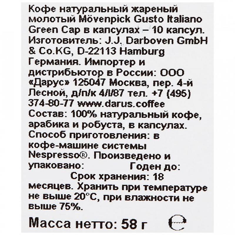 Mоvenpick Gusto Italiano Lungo Green Cap это бленд составленный из изысканной смеси арабики из Центральной и Южной Америки и азиатской робусты в новой экологичной упаковке. Отборные кофейные зерна дарят яркий аромат с тонкими нотками шоколада. Новая экологичная биоразлагаемая упаковка не дает воздуху проникать внутрь, кофе всегда остается свежим, сохраняя свой первозданный вкус и аромат, а самое главное, отсутствует взаимодействие напитка с пластиком и алюминием. Исключительно высокое качество напитка и неизменный вкус каждого бленда достигается благодаря многоступенчатой системе контроля на всех этапах производства.