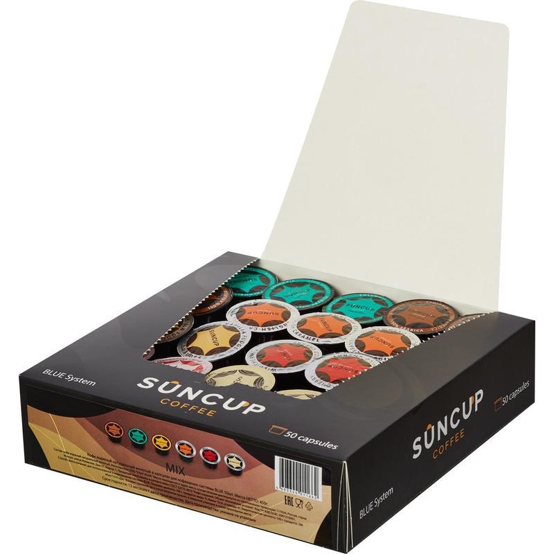 Кофе в капсулах SunCup Mix стандарта Lavazza Blue — отличный микс, для тех кто предпочитает разнообразие. Бразилия, Колумбия, Эфиопия, Карамель, Ваниль, Вишня — все вкусы в одной коробке, выбери свой! Одной капсулы достаточно для приготовления полноценной чашки кофе.