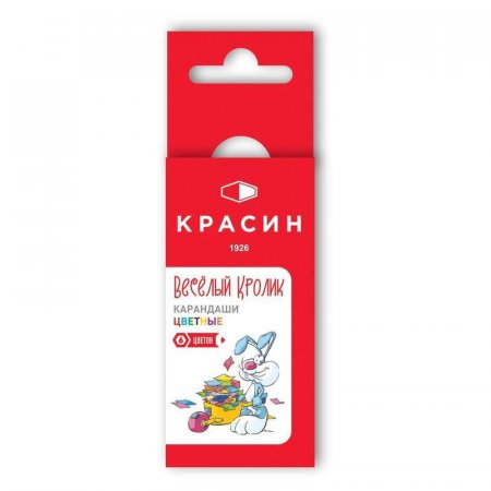 Набор из 6-ти цветных карандашей «Веселыйкролик». Корпус шестигранной формы поперечного сечения, окрашенныйв цвет пишущего стержня. Диаметр — 6.4 мм,длина — 88 мм, заточенные. Поставляются карандашив картонной коробке с европодвесом.