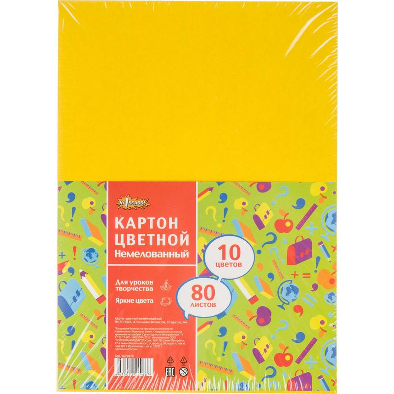 Набор немелованного картона серии Sсhool состоит из 80 листов 10 цветов, прокрашенный с одной стороны. В наборе по 8 листов каждого цвета . Цвета в наборе: желтый, зеленый, коричневый, красный, оранжевый, синий, черный, белый, золотистый и серебристый. Набор упакован в термоусадочную пленку . В наборе листы размером 203?283 мм, плотностью 200 г/кв.м. Подходит для создания аппликаций, изготовления поделок, благодаря матовой поверхности хорошо клеится. Экологичен и безопасен для детей.