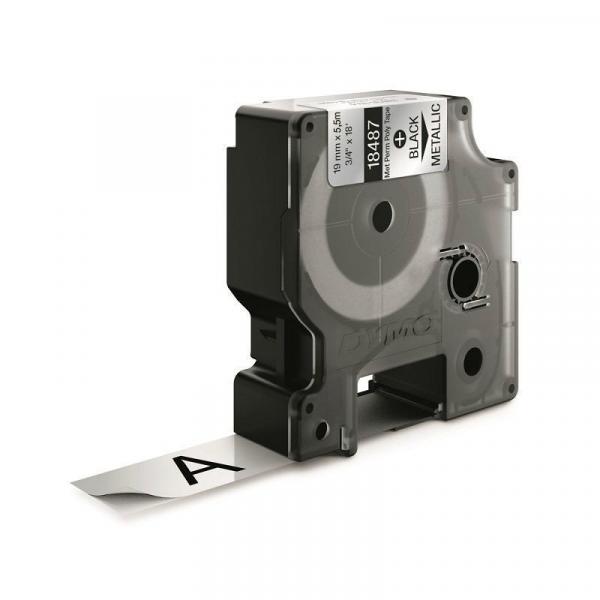 Картридж с лентой Dymo 18484: полиэстер, черный текст на сером фоне, ширина 19 мм, длина 5.5 м.