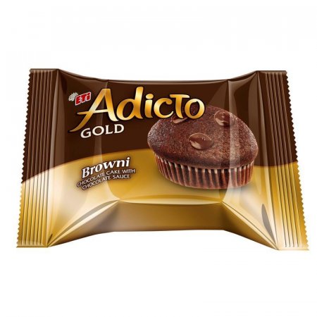 Кекс Eti Adicto Gold с шоколадной начинкой 36 г. Состав: кекс 85% (масло растительное (пальмовое), пшеничная мука (содержит глютен), сахар, яйца, сироп глюкозно-фруктозный, горький шоколад 4,5% (сахар, какао-масса, какао масло, какао, эмульгаторы (подсолнечный лецитин, Е 476), ароматизатор (ванилин). Массовая доля общего сухого остатка какао-продуктов — не менее 52%), влагоудерживающий агент (E 420), какао, соль, эмульгаторы (E 471, E 475), разрыхлители (E 450, E 500), консервант (E 202), ароматизатор (ванилин), регулятор кислотности (лимонная кислота), загуститель (E 415), антиоксидант (E 306)), шоколадный соус 15% (сахар, сироп глюкозно-фруктозный, сухое молоко, какао 6,8%, горький шоколад 5,9%, влагоудерживающий агент (E 420), E 1414, соль, масла растительные (пальмовое, подсолнечное, хлопковое, рапсовое), консервант (E 202), регулятор кислотности (лимонная кислота)). Пищевая ценность: белки — 5,5 г, жиры — 22,9 г, углеводы — 51 г. Энергетическая ценность: 438 ккал. Хранить при температуре от 18 до 21градус.С, относительной влажности воздуха не более 65%. Страна производства: Турция.